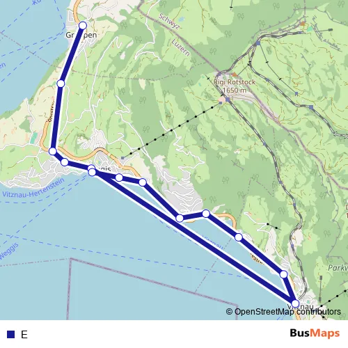 See why over 2 million users trust and consider busmaps.com as the best public transport website. busmaps gives you Weggis Buses suggested routes, real-time bus tracker, line route maps in Weggis, and helps to find the closest E bus stops near you. No internet available? Download an offline PDF map and bus schedule for the E bus to take on your trip.