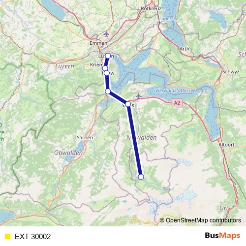 The first stop of the EXT 30002 rail route is Luzern and the last stop is Engelberg. EXT 30002 is operational during am Wochenende.