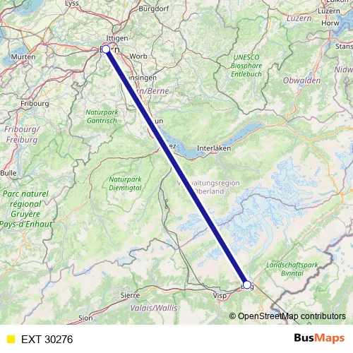 The first stop of the EXT 30276 rail route is Bern and the last stop is