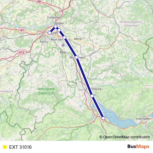 The first stop of the EXT 31016 rail route is Spiez and the last stop is Bern. EXT 31016 is operational during täglich.