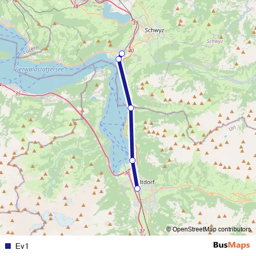 The first stop of the Ev1 bus route is Brunnen, Bahnhof and the last stop is Altdorf UR, Bahnhof West. Ev1 is operational during täglich.