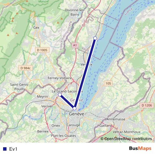 See why over 2 million users trust and consider busmaps.com as the best public transport website. busmaps gives you Geneve Buses suggested routes, real-time bus tracker, line route maps in Geneve, and helps to find the closest Ev1 bus stops near you. No internet available? Download an offline PDF map and bus schedule for the Ev1 bus to take on your trip.