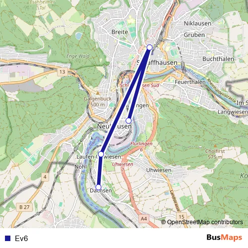 See why over 2 million users trust and consider busmaps.com as the best public transport website. busmaps gives you Schaffhausen Buses suggested routes, real-time bus tracker, line route maps in Schaffhausen, and helps to find the closest Ev6 bus stops near you. No internet available? Download an offline PDF map and bus schedule for the Ev6 bus to take on your trip.