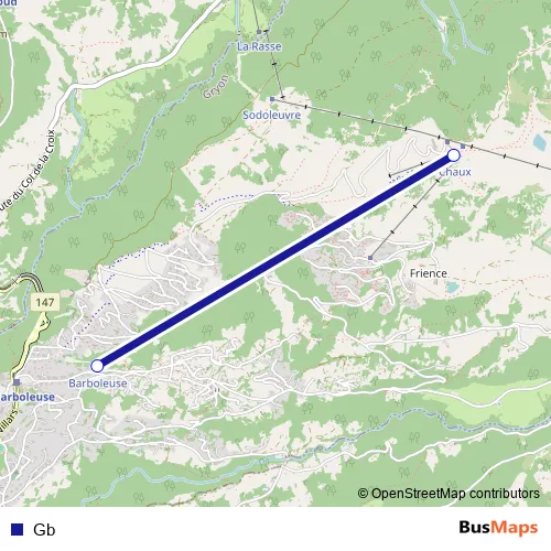 The first stop of the Gb cable-car route is Les Chaux (Barboleuse) and the last stop is La Barboleuse (télécabine). Gb is operational during täglich.