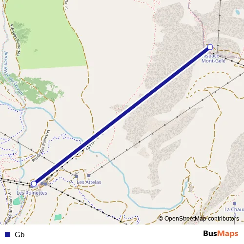 The first stop of the Gb cable-car route is Les Attelas and the last stop is Croix-des-Ruinettes. Gb is operational during täglich.