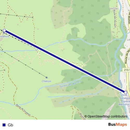 The first stop of the Gb cable-car route is Sorebois and the last stop is Zinal (télépherique). Gb is operational during täglich.