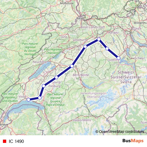 See why over 2 million users trust and consider busmaps.com as the best public transport website. busmaps gives you Fribourg Rail Services suggested routes, real-time bus tracker, line route maps in Fribourg, and helps to find the closest IC 1490 rail stops near you. No internet available? Download an offline PDF map and bus schedule for the IC 1490 rail to take on your trip.