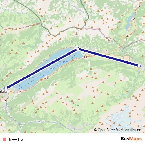 The first stop of the Ir rail route is Interlaken Ost and the last stop is Meiringen. Ir (Lix) is operational during täglich.