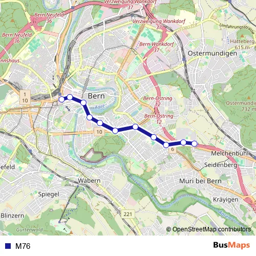 See why over 2 million users trust and consider busmaps.com as the best public transport website. busmaps gives you Bern Buses suggested routes, real-time bus tracker, line route maps in Bern, and helps to find the closest M76 bus stops near you. No internet available? Download an offline PDF map and bus schedule for the M76 bus to take on your trip.