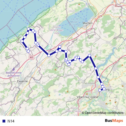 See why over 2 million users trust and consider busmaps.com as the best public transport website. busmaps gives you Fribourg Buses suggested routes, real-time bus tracker, line route maps in Fribourg, and helps to find the closest N14 bus stops near you. No internet available? Download an offline PDF map and bus schedule for the N14 bus to take on your trip.
