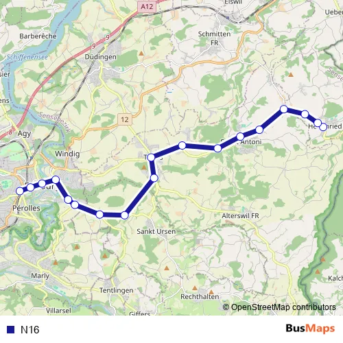 See why over 2 million users trust and consider busmaps.com as the best public transport website. busmaps gives you Fribourg Buses suggested routes, real-time bus tracker, line route maps in Fribourg, and helps to find the closest N16 bus stops near you. No internet available? Download an offline PDF map and bus schedule for the N16 bus to take on your trip.