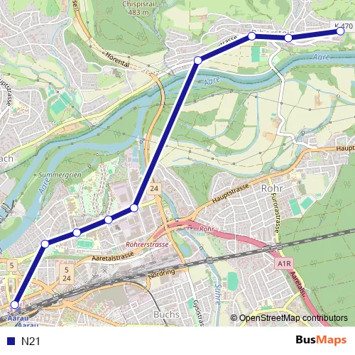 See why over 2 million users trust and consider busmaps.com as the best public transport website. busmaps gives you Aarau Buses suggested routes, real-time bus tracker, line route maps in Aarau, and helps to find the closest N21 bus stops near you. No internet available? Download an offline PDF map and bus schedule for the N21 bus to take on your trip.