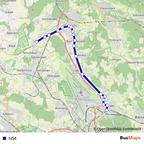 See why over 2 million users trust and consider busmaps.com as the best public transport website. busmaps gives you Buelach Buses suggested routes, real-time bus tracker, line route maps in Buelach, and helps to find the closest N54 bus stops near you. No internet available? Download an offline PDF map and bus schedule for the N54 bus to take on your trip.
