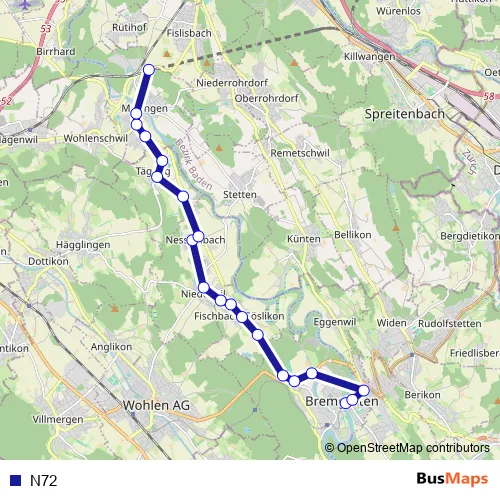 Bus N72 : Full Schedule in Bremgarten