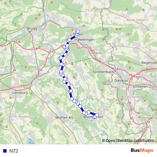 Bus N72 : Full Schedule in Baden