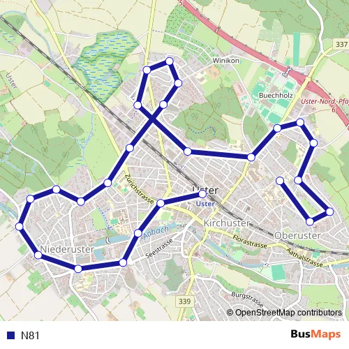 See why over 2 million users trust and consider busmaps.com as the best public transport website. busmaps gives you Uster Buses suggested routes, real-time bus tracker, line route maps in Uster, and helps to find the closest N81 bus stops near you. No internet available? Download an offline PDF map and bus schedule for the N81 bus to take on your trip.