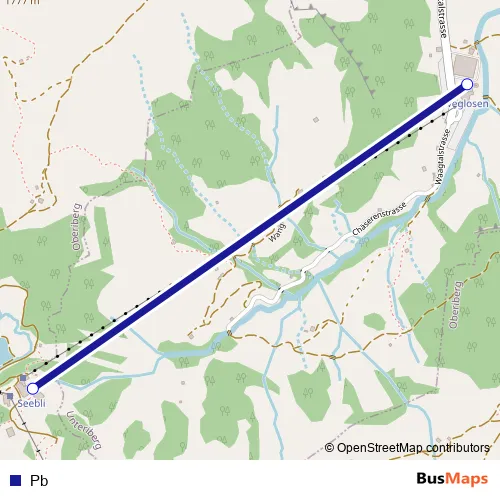 The first stop of the Pb cable-car route is Unteriberg Weglosen (Talst.) and the last stop is Hoch-Ybrig Seebli. Pb is operational during täglich.