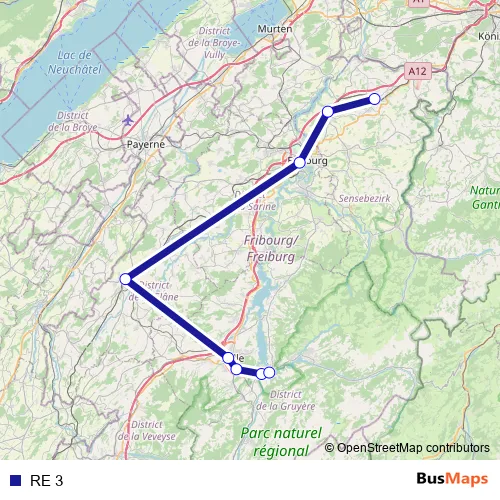 See why over 2 million users trust and consider busmaps.com as the best public transport website. busmaps gives you Fribourg Rail Services suggested routes, real-time bus tracker, line route maps in Fribourg, and helps to find the closest RE 3 rail stops near you. No internet available? Download an offline PDF map and bus schedule for the RE 3 rail to take on your trip.