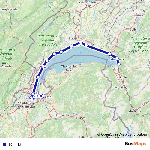 See why over 2 million users trust and consider busmaps.com as the best public transport website. busmaps gives you Geneve Rail Services suggested routes, real-time bus tracker, line route maps in Geneve, and helps to find the closest RE 33 rail stops near you. No internet available? Download an offline PDF map and bus schedule for the RE 33 rail to take on your trip.