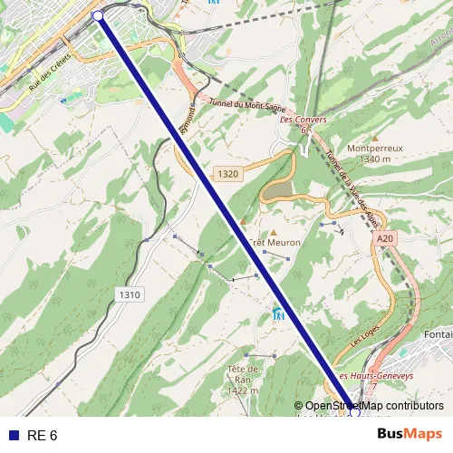 The first stop of the RE 6 rail route is Les Hauts-Geneveys and the last stop is La Chaux-de-Fonds. RE 6 is operational during täglich.