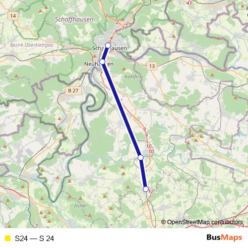 See why over 2 million users trust and consider busmaps.com as the best public transport website. busmaps gives you Schaffhausen Rail Services suggested routes, real-time bus tracker, line route maps in Schaffhausen, and helps to find the closest S24 rail stops near you. No internet available? Download an offline PDF map and bus schedule for the S24 rail to take on your trip.