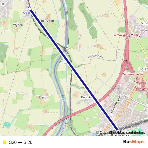 The first stop of the S26 rail route is Oberrüti and the last stop is Rotkreuz. S26 (S 26) is operational during täglich.