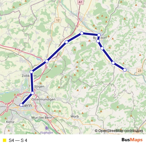 See why over 2 million users trust and consider busmaps.com as the best public transport website. busmaps gives you Bern Rail Services suggested routes, real-time bus tracker, line route maps in Bern, and helps to find the closest S4 rail stops near you. No internet available? Download an offline PDF map and bus schedule for the S4 rail to take on your trip.