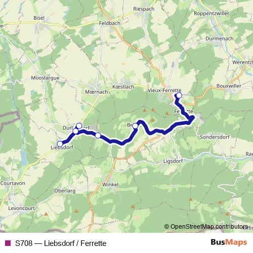 Bus S708 - Liebsdorf / Ferrette Schedule in Durlinsdorf