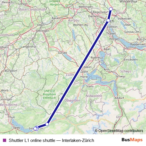 Click here to view the nearest Shuttler L1 online shuttle - Interlaken-Zürich bus stop.