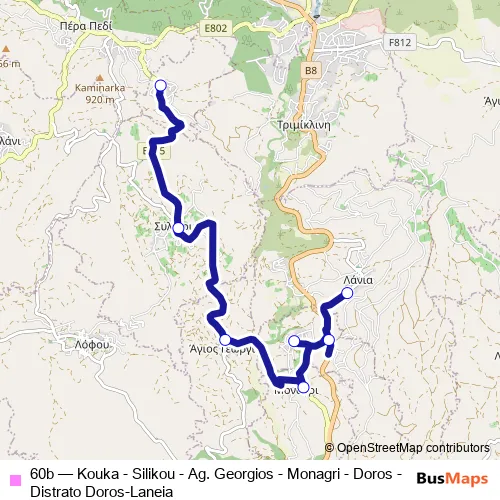 Bus 60b - Κουκά - Σιλίκου - Αγ. Γεωργιος - Μονάγρι - Δωρός - Δίστρατο Δωρού - Λάνειας: Full Schedule in Troodos