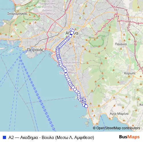 See why over 2 million users trust and consider busmaps.com as the best public transport website. busmaps gives you Glyfada Buses suggested routes, real-time bus tracker, line route maps in Glyfada, and helps to find the closest Α2 bus stops near you. No internet available? Download an offline PDF map and bus schedule for the Α2 bus to take on your trip.