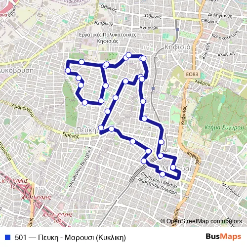 Bus 501 - Πευκη - Μαρουσι (Κυκλικη) Schedule in Pefki