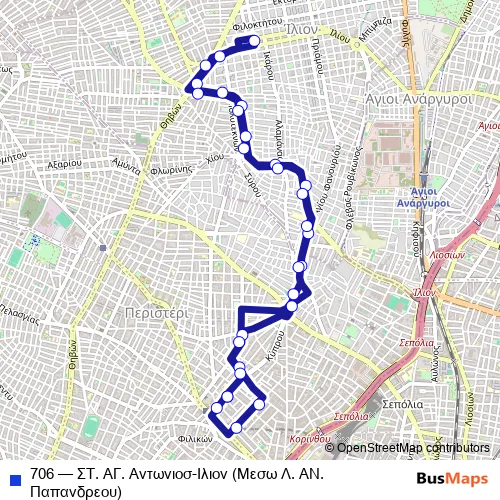 Bus 706 - ΣΤ. ΑΓ. Αντωνιοσ-Ιλιον (Μεσω Λ. ΑΝ. Παπανδρεου) in Athens: Stops & Timetable