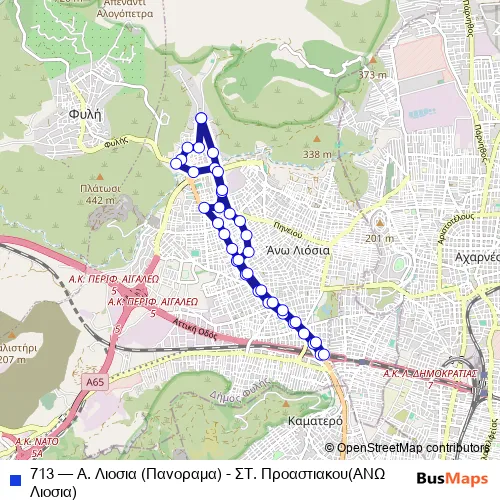 Bus 713 - Α. Λιοσια (Πανοραμα) - ΣΤ. Προαστιακου(ΑΝΩ Λιοσια) Schedule in Ano Liosia