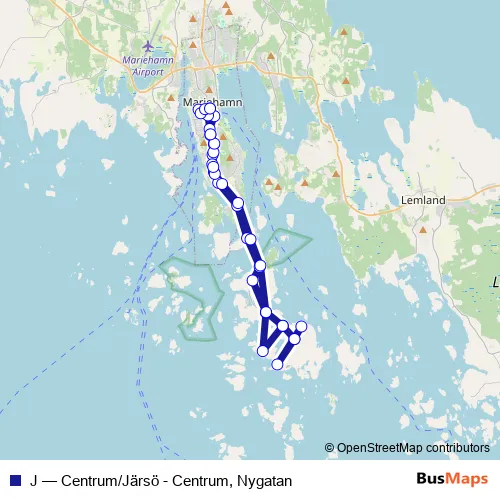 Bus J - Centrum/Järsö - Centrum, Nygatan in Mariehamn: Stops & Timetable