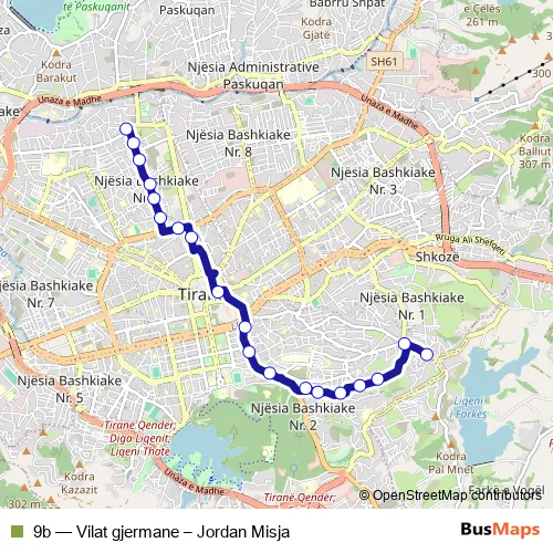 See why over 2 million users trust and consider busmaps.com as the best public transport website. busmaps gives you Tirana Buses suggested routes, real-time bus tracker, line route maps in Tirana, and helps to find the closest 9b bus stops near you. No internet available? Download an offline PDF map and bus schedule for the 9b bus to take on your trip.