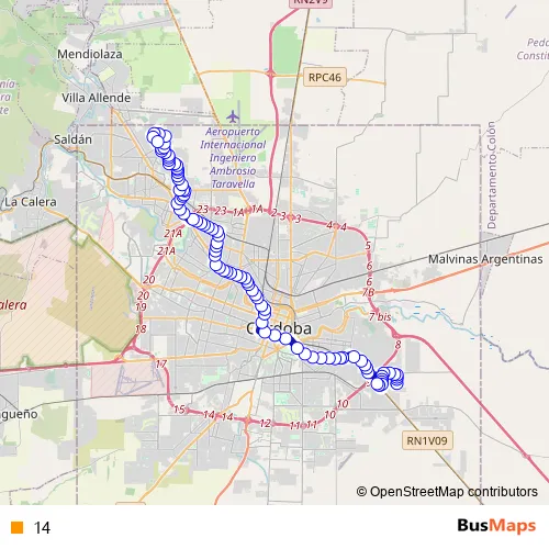 See why over 2 million users trust and consider busmaps.com as the best public transport website. busmaps gives you Cordoba Buses suggested routes, real-time bus tracker, line route maps in Cordoba, and helps to find the closest 14 bus stops near you. No internet available? Download an offline PDF map and bus schedule for the 14 bus to take on your trip.