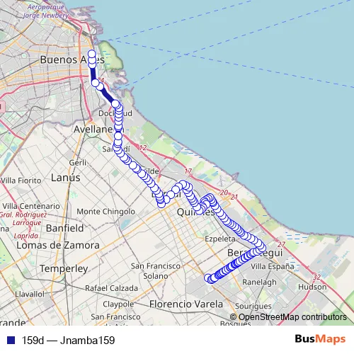See why over 2 million users trust and consider busmaps.com as the best public transport website. busmaps gives you Quilmes Buses suggested routes, real-time bus tracker, line route maps in Quilmes, and helps to find the closest 159d bus stops near you. No internet available? Download an offline PDF map and bus schedule for the 159d bus to take on your trip.