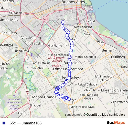 See why over 2 million users trust and consider busmaps.com as the best public transport website. busmaps gives you Lomas de Zamora Buses suggested routes, real-time bus tracker, line route maps in Lomas de Zamora, and helps to find the closest 165c bus stops near you. No internet available? Download an offline PDF map and bus schedule for the 165c bus to take on your trip.