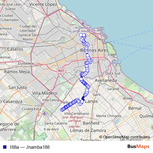 See why over 2 million users trust and consider busmaps.com as the best public transport website. busmaps gives you Buenos Aires Buses suggested routes, real-time bus tracker, line route maps in Buenos Aires, and helps to find the closest 188a bus stops near you. No internet available? Download an offline PDF map and bus schedule for the 188a bus to take on your trip.
