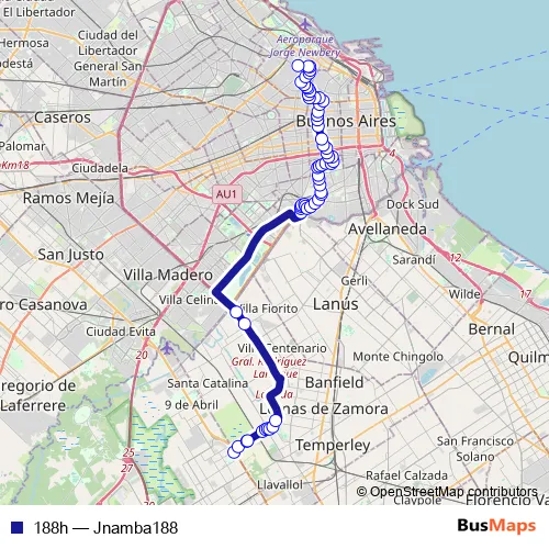 Coronel Álvaro Barros - Avenida Juan XXIII - Oslo - Juan Meléndez Valdez - Presidente Juan Domingo Perón - Autopista Camino Negro - Puente Ezequiel Demonty - Avenida Sáenz - Lynch - Beazley - Avenida Amancio Alcorta - Monteagudo - La Rioja - Avenida Brasil - Cátulo Castillo - Avenida Pichincha - Avenida Juan de Garay - Alberti - Avenida Jujuy - Avenida Pueyrredón - Larrea - Avenida Córdoba - Gallo - General Lucio Norberto Mansilla - Jerónimo Salguero - French - Avenida General Las Heras