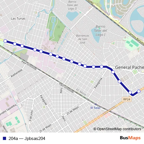 See why over 2 million users trust and consider busmaps.com as the best public transport website. busmaps gives you General Pacheco Buses suggested routes, real-time bus tracker, line route maps in General Pacheco, and helps to find the closest 204a bus stops near you. No internet available? Download an offline PDF map and bus schedule for the 204a bus to take on your trip.