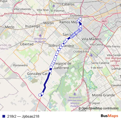 See why over 2 million users trust and consider busmaps.com as the best public transport website. busmaps gives you San Justo Buses suggested routes, real-time bus tracker, line route maps in San Justo, and helps to find the closest 218r2 bus stops near you. No internet available? Download an offline PDF map and bus schedule for the 218r2 bus to take on your trip.