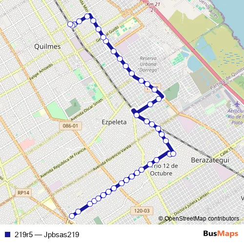 See why over 2 million users trust and consider busmaps.com as the best public transport website. busmaps gives you Quilmes Buses suggested routes, real-time bus tracker, line route maps in Quilmes, and helps to find the closest 219r5 bus stops near you. No internet available? Download an offline PDF map and bus schedule for the 219r5 bus to take on your trip.