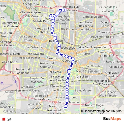 See why over 2 million users trust and consider busmaps.com as the best public transport website. busmaps gives you Cordoba Buses suggested routes, real-time bus tracker, line route maps in Cordoba, and helps to find the closest 24 bus stops near you. No internet available? Download an offline PDF map and bus schedule for the 24 bus to take on your trip.