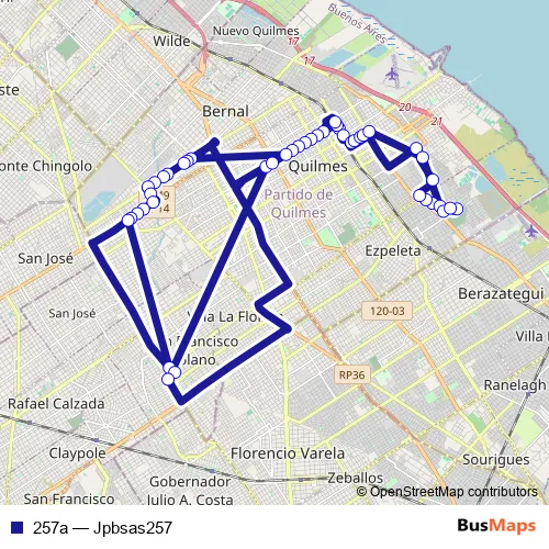 La Guarda - General Paz - Derqui - Monroe - Avenida Hipólito Yrigoyen - Avenida Rodolfo López - Avenida Zapiola - Camino General Belgrano - Avenida Tomás Flores - Avenida Ferrocarril Provincial - Miguel Ángel Pascual - Avenida Lirio - Avenida Rodolfo López - Carlos Morel - Garibaldi - Monroe - Pringles - Padre Bruzzone