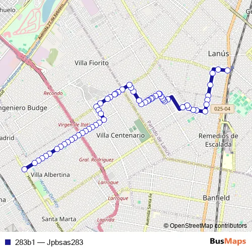 Avenida 25 de Mayo - 2 de Mayo - De La Cruz - Teniente Jorge Rangugni - Avenida Coronel Leonardo Rosales - Dardo Rocha - Ruiz de Ocaña - Marco Avellaneda - Monseñor Juan Hladnik - Hernando de Magallanes - Avenida General Hornos - Ejército de los Andes - General Conesa - Ejército de los Andes - Milán - Virgen de Itatí