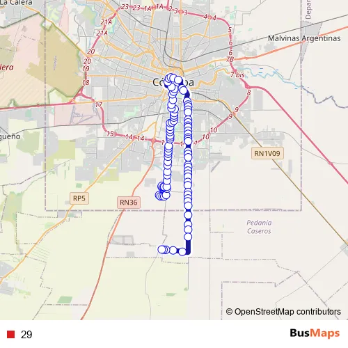 See why over 2 million users trust and consider busmaps.com as the best public transport website. busmaps gives you Cordoba Buses suggested routes, real-time bus tracker, line route maps in Cordoba, and helps to find the closest 29 bus stops near you. No internet available? Download an offline PDF map and bus schedule for the 29 bus to take on your trip.