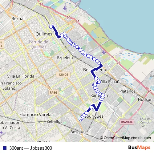 See why over 2 million users trust and consider busmaps.com as the best public transport website. busmaps gives you Quilmes Buses suggested routes, real-time bus tracker, line route maps in Quilmes, and helps to find the closest 300ant bus stops near you. No internet available? Download an offline PDF map and bus schedule for the 300ant bus to take on your trip.