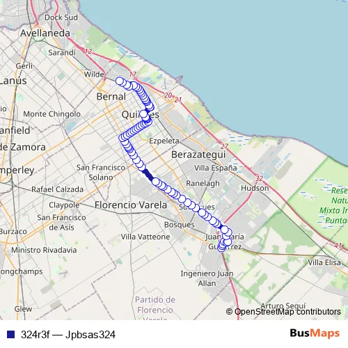 See why over 2 million users trust and consider busmaps.com as the best public transport website. busmaps gives you Quilmes Buses suggested routes, real-time bus tracker, line route maps in Quilmes, and helps to find the closest 324r3f bus stops near you. No internet available? Download an offline PDF map and bus schedule for the 324r3f bus to take on your trip.